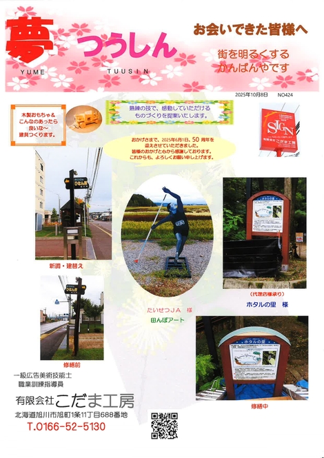 こだま工房は、北海道旭川市の看板屋です。 看板・造形木製品・ミニリフォーム・店舗内装・建具など、長年培ってきた技術を活かして、あなたのお店や会社を飾る看板を制作いたします。